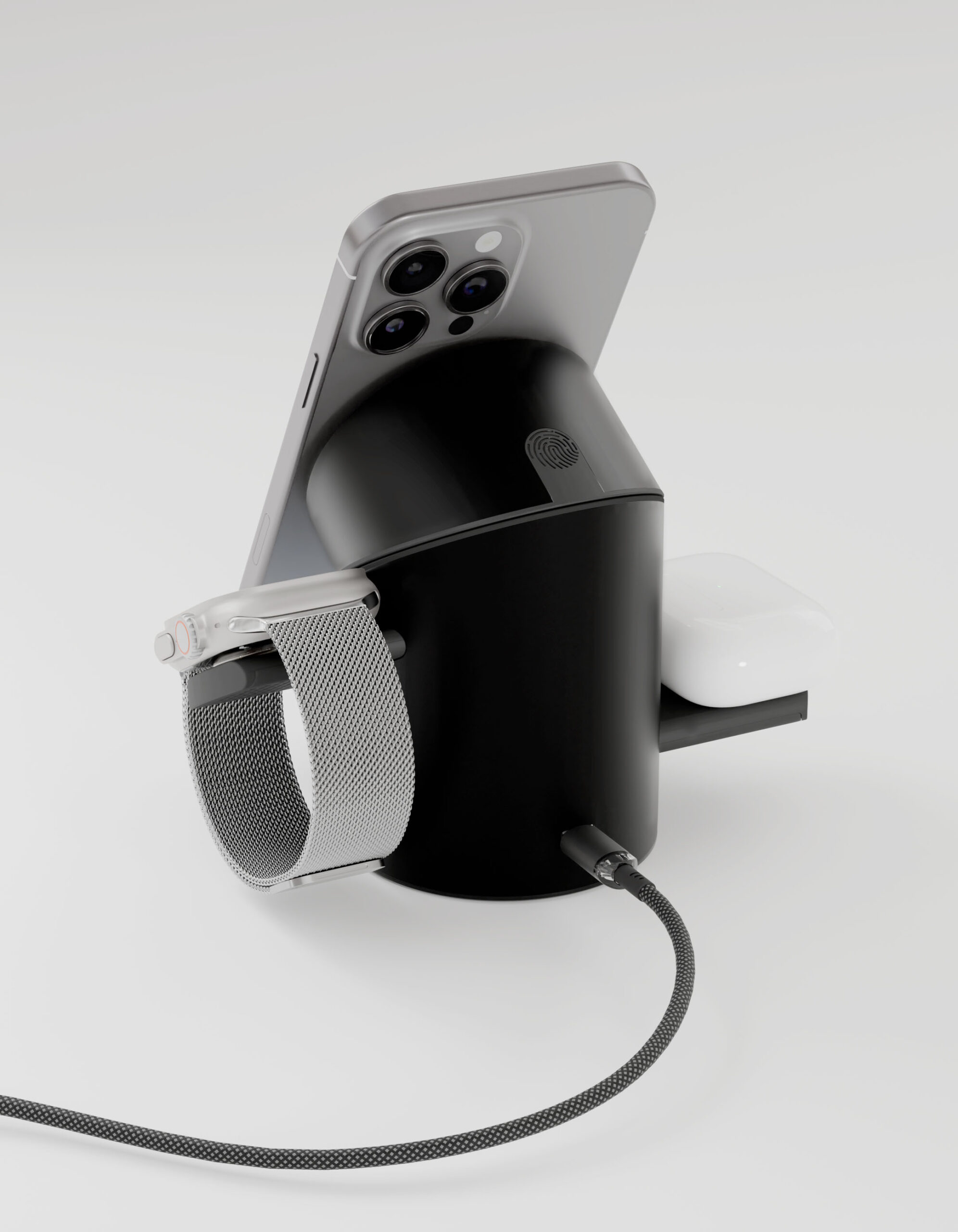 Устройство позволяет заряжать смартфон , умные часы (Apple Watch, Samsung Galaxy Watch) и наушники (AirPods, Buds) одновременно. Поддержка MagSafe обеспечивает точное позиционирование iPhone 12/13/14, а стандарт Qi гарантирует совместимость с Android-устройствами. Мощность до 30 Вт обеспечивает быструю зарядку, а технология USB Power Delivery оптимизирует напряжение для разных гаджетов.