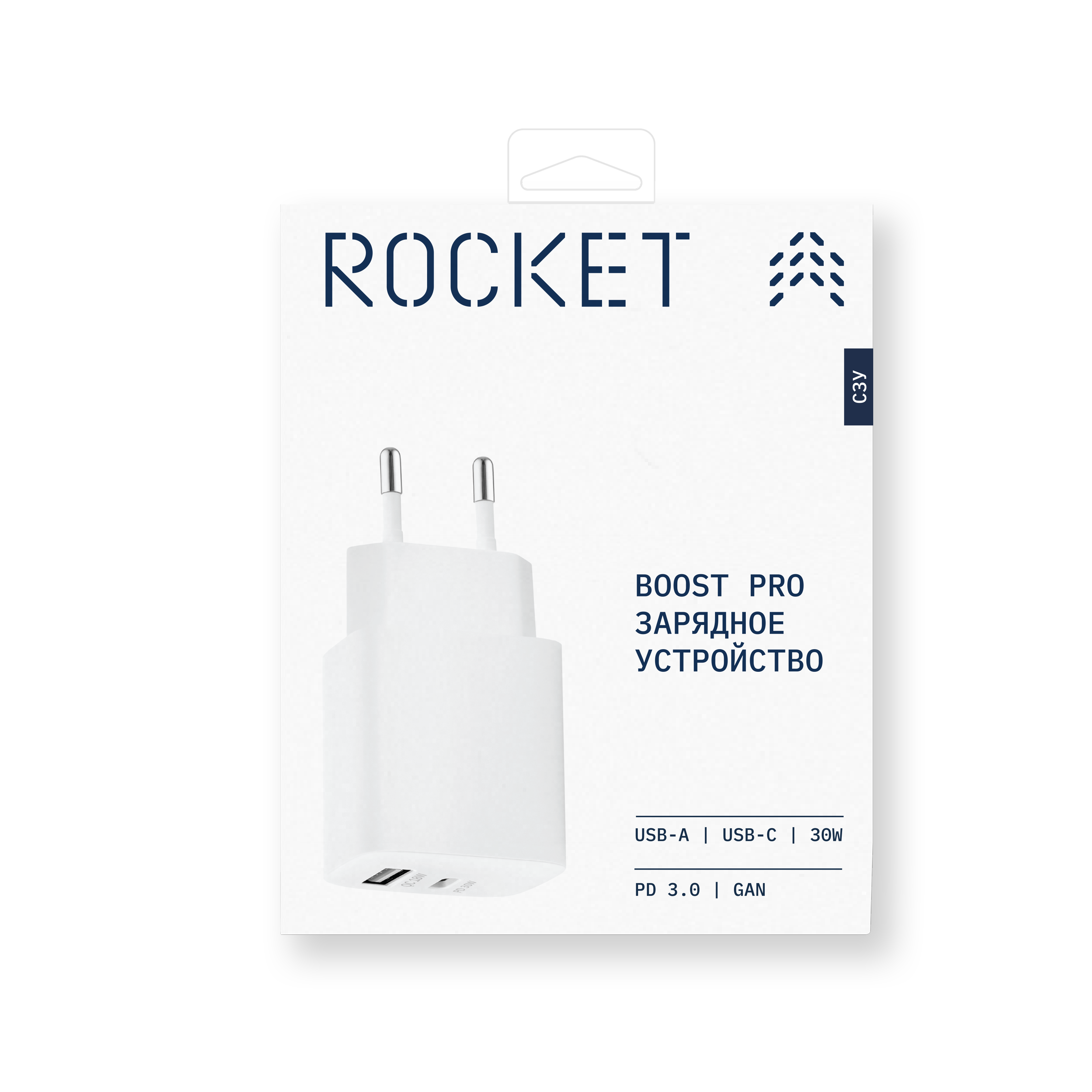 СЗУ Rocket Boost Pro (1xUSB-C, 1xUSB-A, 30W) Белый